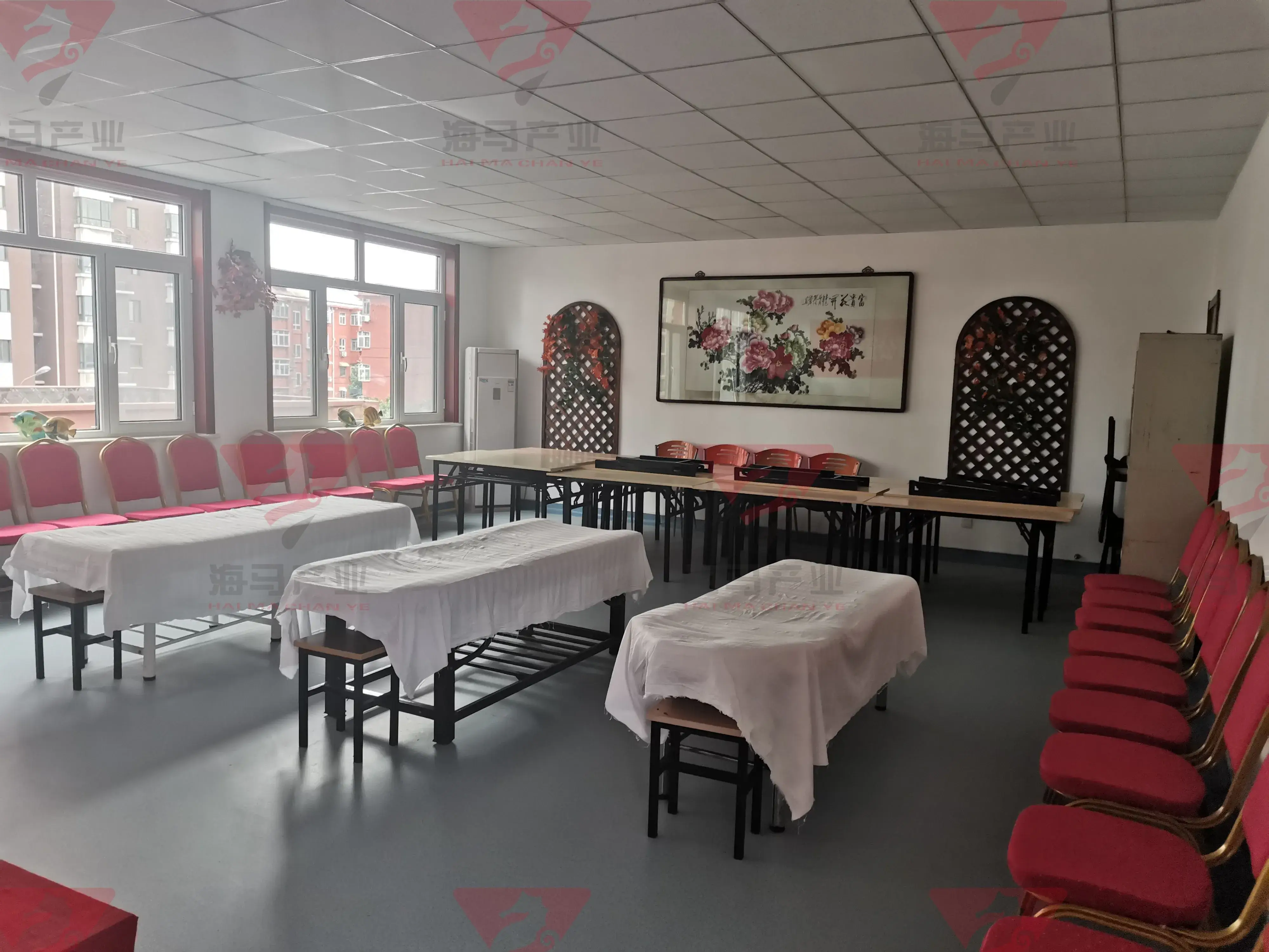 三层乒乓球室,有效面积约为300平方;共设4个乒乓球台。